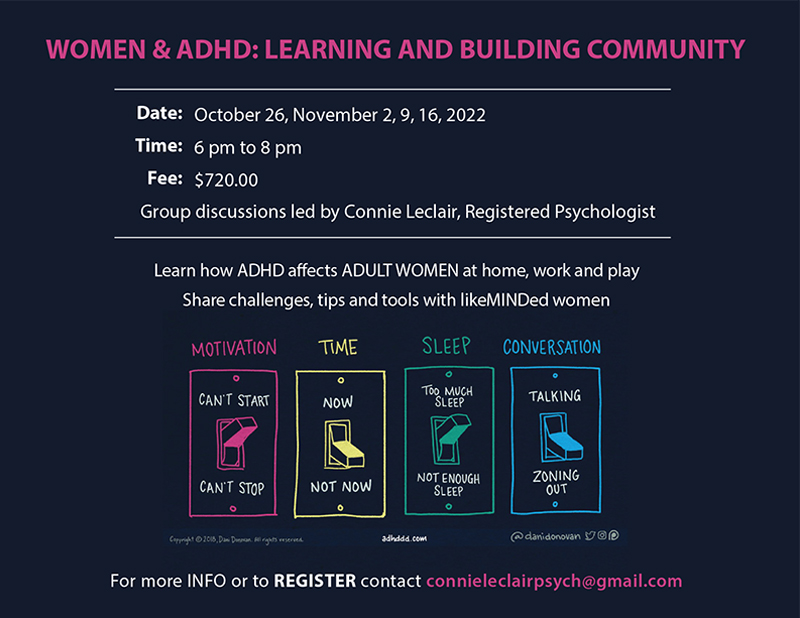 For more information or to register, contact connieleclairpsych@gmail.com.